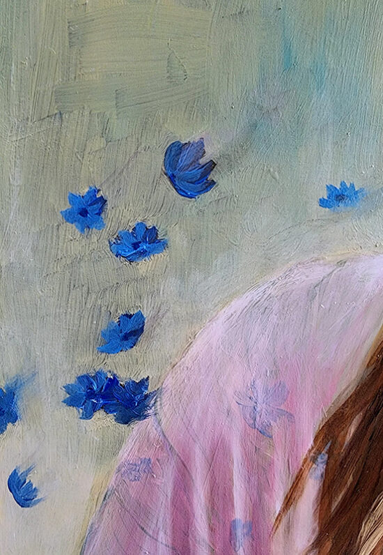 Medium: Oil, gold metal leaf, resin on cradled wood panel