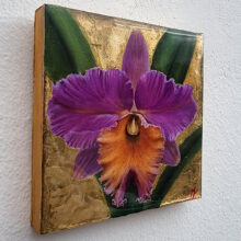 Archival print mounted on wood panel with gold and resin. Each one is unique. Eeasy to hang or display on a shelf. The original painting is from my Solarium collection.